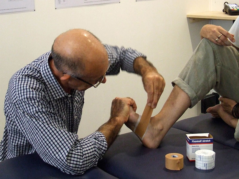 Peter will identify the injured structure then use a combination of strapping, stretching and strengthening to protect the injured tissues, improve associated muscle strength and coordination and review movement patterns.